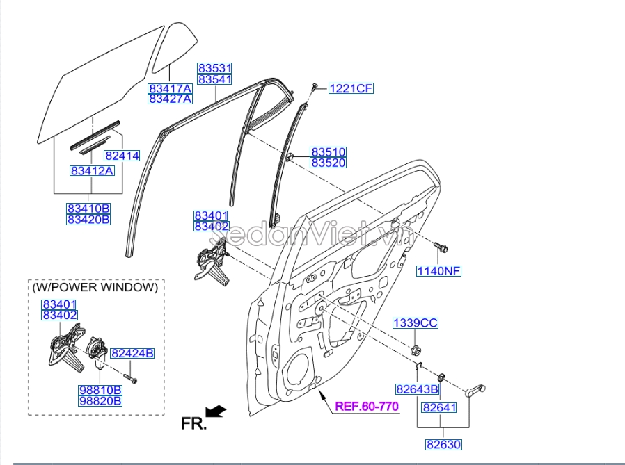 Tên phụ tùng COMPA LÊN XUỐNG KÍNH CỬA, mã phụ tùng 83403B4110 được sản xuất trên dây chuyền công nghệ tiên tiến, từ nhà máy phụ tùng ô tô HYUNDAI HÀN QUỐC.