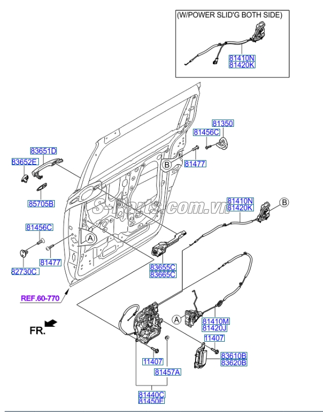 Tên phụ tùng Ổ KHÓA NGẬM CÁNH CỬA LÙA, mã phụ tùng 81450A9511 được sản xuất trên dây chuyền công nghệ tiên tiến, từ nhà máy phụ tùng ô tô KIA HÀN QUỐC.