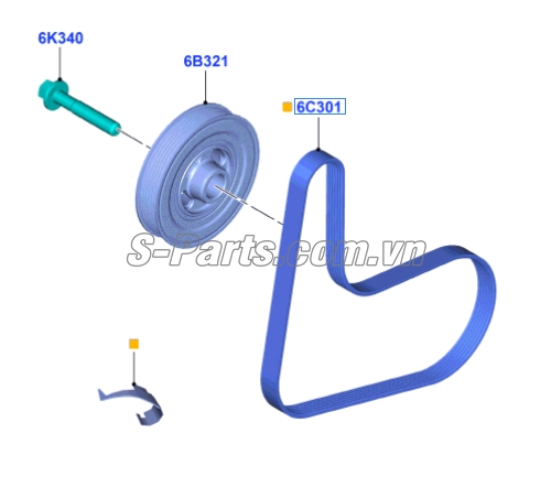 Tên phụ tùng PULY TRỤC CƠ, mã phụ tùng 8A6G6B321AC được sản xuất trên dây chuyền công nghệ tiên tiến, từ nhà máy phụ tùng ô tô FORD.